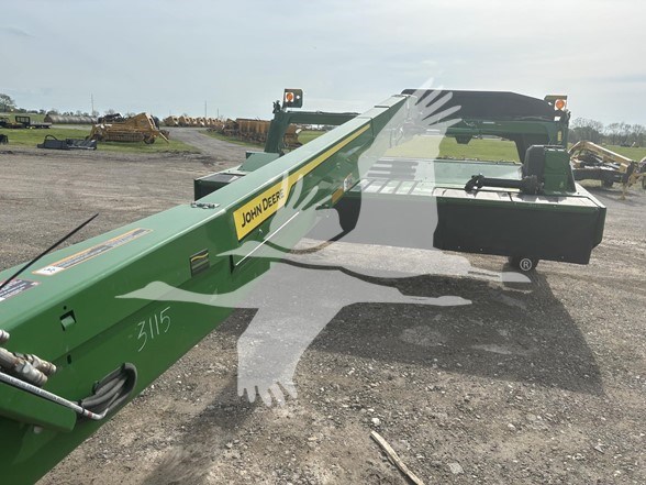 Bolted Knives. Hydraulic cutter bar tilt. 2-point rockshaft swivel hitch. 13' cutting width. 13' transport width. 8 cutting disks with 16 knives. Cutter bar has ShearHub protection on each cutting disk. Cutter bar also has outer adjustable skid shoes.</li><li>Width: 156</li><li>Number Of Acres: 1200</li><li>Fieldready: Yes</li><li>Pto: 1000</li><li>Weight: 6805</li><li>Ptosize: 1 3/8</li><li>Hitchtype: 2Pt</li><li>Numdiscs: 8</li><li>Number Of Knives: 16</li><li>Doesnotrun: No</li><li>Windrowmerger: No</li><li>Swivelhitch: Yes</li><li>Centerpivotpulltype: Yes</li><li>Cutterbartype: Rotary Disc</li><li>Modularcutterbar: Yes</li><li>Cutterbarprotection: Yes</li><li>Quickchangeknifesystem: No</li><li>Conditionertype: Steel</li><li>Cutterbartiltadjust: Yes</li><li>Cutterbartiltadjusttype: Hydraulic</li><li>Flotationsystem: Yes</li><li>Powerreverser: No</li>