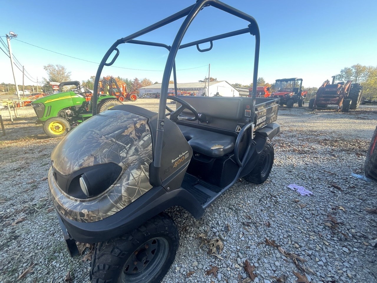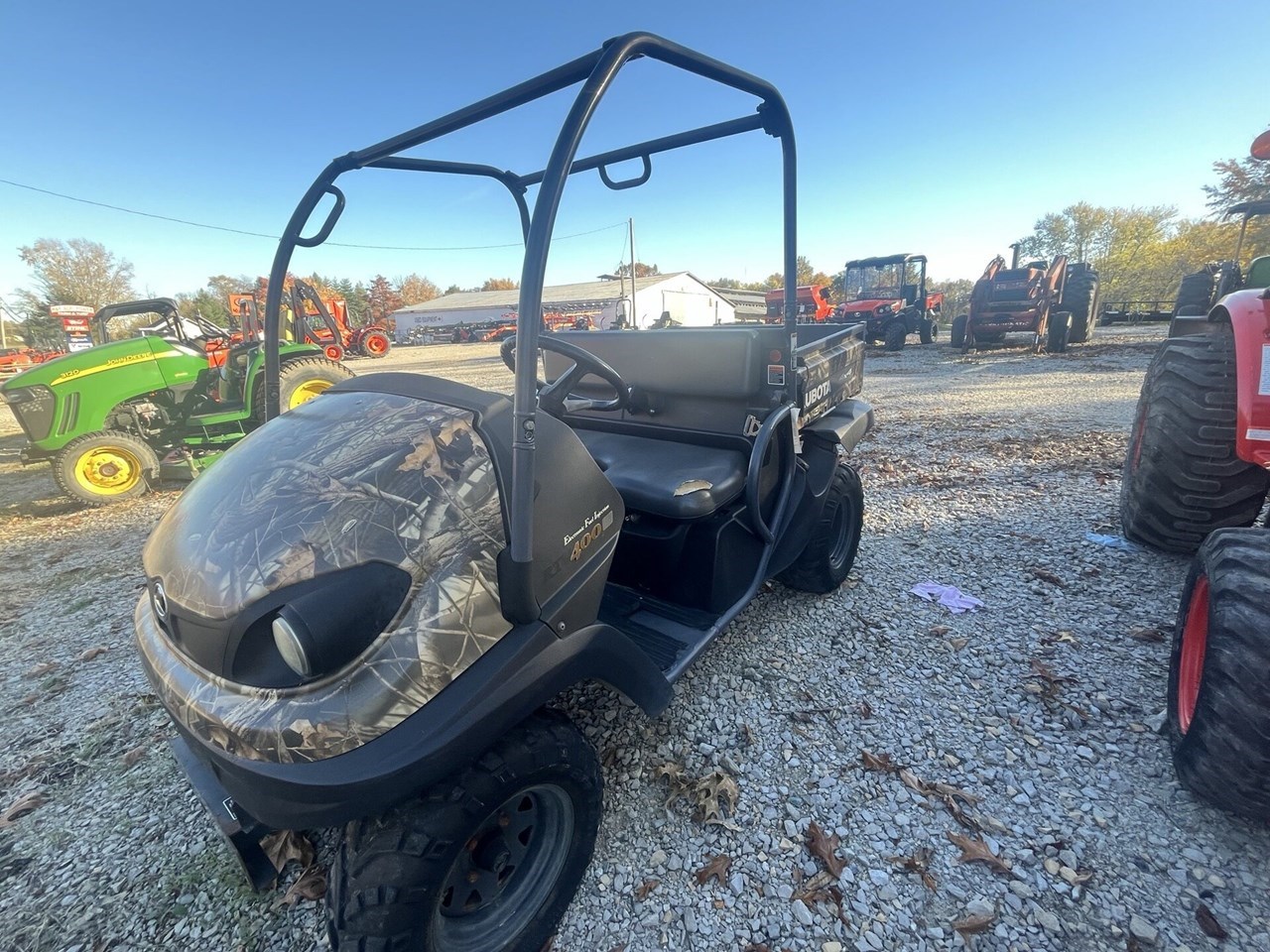 10636A (X) Color:Camo Enclosure Features: None ROPS/Seatbelts:Yes Type of Engine:Gas HP:14 Drive Type:Hydrostatic You may also contact Terry Martin at (270) 889-4066. Dealer Disclaimer: H & R Agri-Power used inventory pricing,hours,specifications and options shown are based on the original appraisal of the unit. If we discover a mistake prior to a signed sales order being executed,we reserve the right to correct said pricing,specifications,or options. Price excludes delivery,modifications,or any applicable taxes.