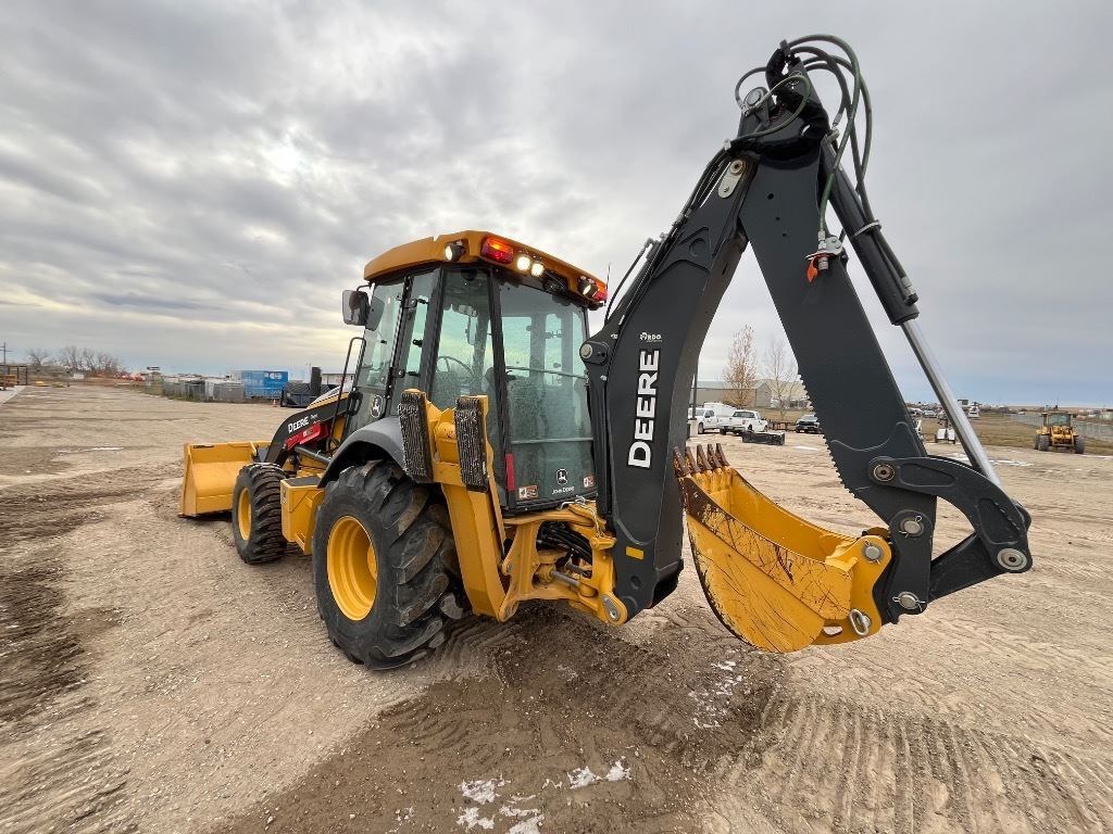 <li>BACKHOE LOADER - CAB - MFWD W/ LIMITED OPEN DIFFERENTIAL - 21L4 TIRES - 1250LB FRONT COUNTERWEIGHT - EXTENDIBLE DIPPERSTICK - MECHANICAL CONTROL 2 LEVER - LOADER COUPLER 3FUNCTION HYDRAULICS</li><li>Operators Station Cab w/ AC</li><li>Arms Extendible Dipper</li><li>Attachments Quick Coupler</li><li>Tires 21L Tires</li>
