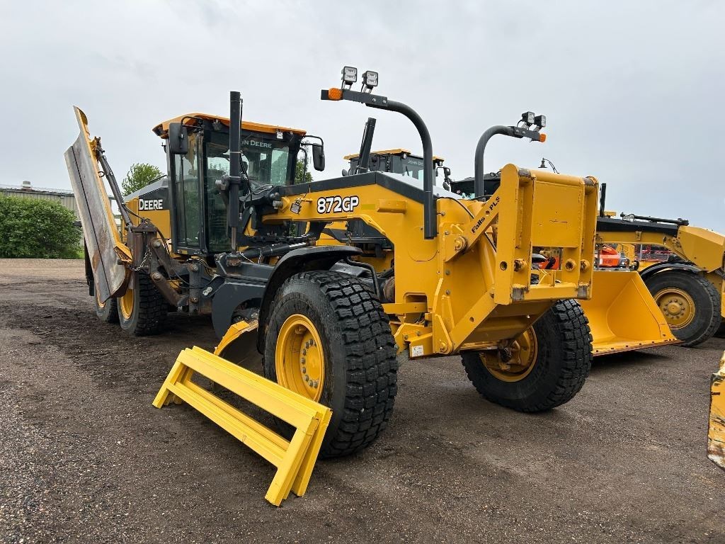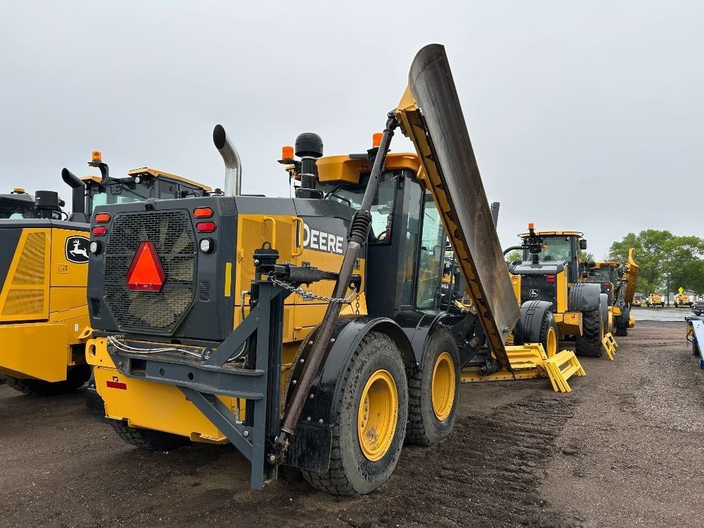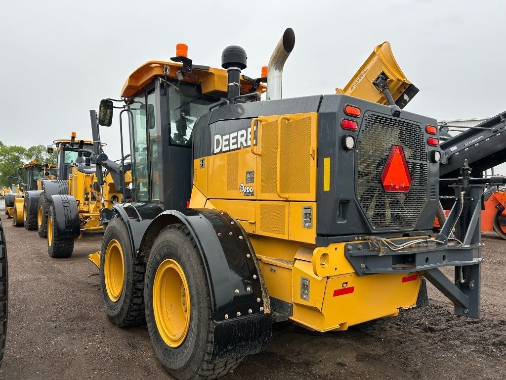 <li>MOTOR GRADER - ARMREST FINGERTIP CONTROLS - DUAL 100 AMP ALTERNATORS - QUICK SERVICE GROUP - 14'X27"X1" MB W/8" CE (5/8") - 17.5R25 SNOW MICH 1PC RIM - LOW CAB W/ OPEN WINDOWS - GRADE PRO CONTROLS W/3 FRONT AUX FUNCTION - FRONT FENDERS - PREMIUM GRADING LIGHTS - HEATED EXTERIOR MOUNTED REARVIEW MIRRORS - CAB W/AC - REAR CAMERA - REAR WHEEL FENDERS - AUTOMATION SUITE - ENGINE BLOCK HEATER</li><li>Operators Station Cab w/ AC</li><li>Blades 4.27 m (14 ft.) Blade</li><li>Tires 17.50 Tires</li><li>Powertrain All Wheel Drive</li>